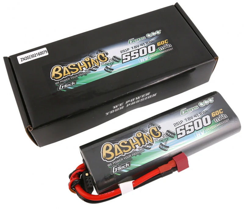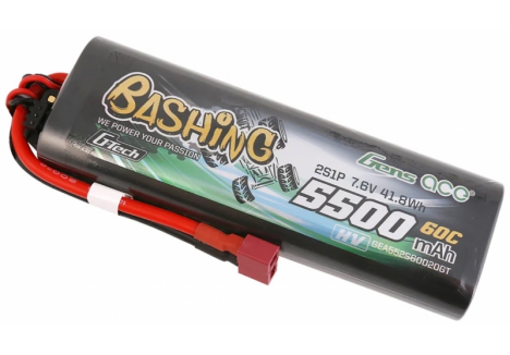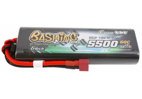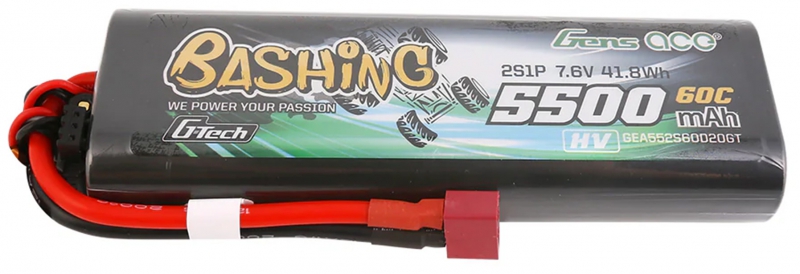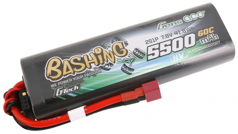 Gens ace G-Tech 5500mAh 7.6V 2S1P 60C HV car Lipo Battery Pack Hardcase 20# with T Plug is one of the best quality battery in RC car area; the excellent side tech; and the consistent output power. Bashing series car packs assortment covered most RC car types in the market. It provides good performance; quality and cost friendly to leisure or entry level hobbyist