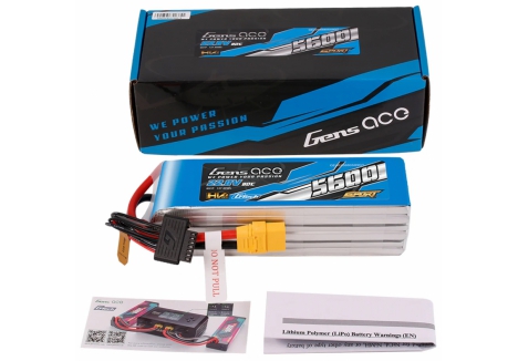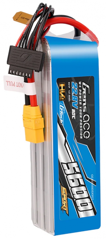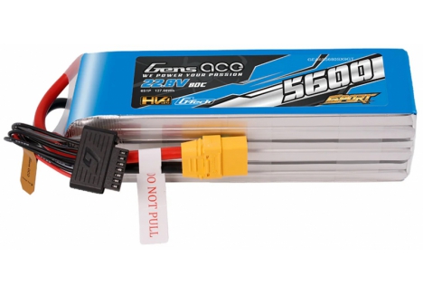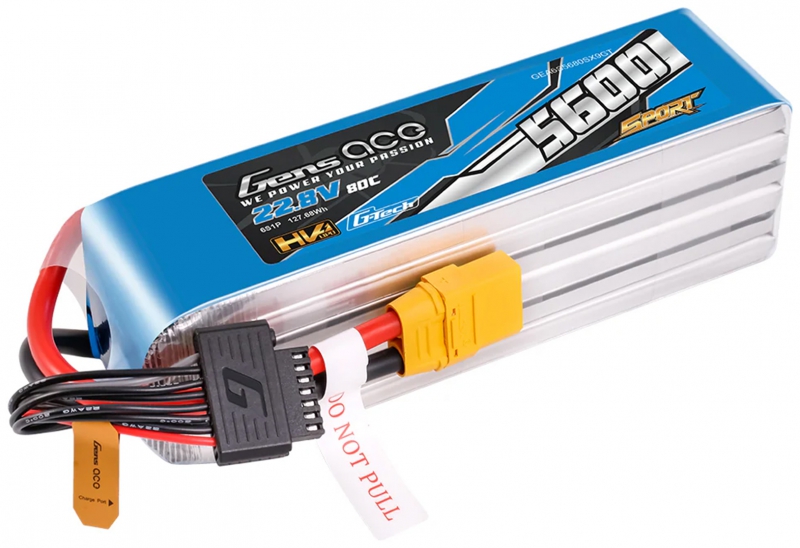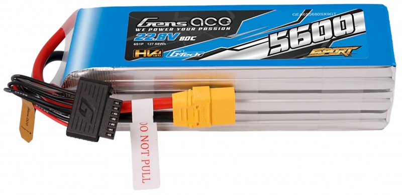 - (1) Gens Ace O-GTS6H5600-80SX9 6S HV 22.2V 5600mAh 80C Softcase LiPo Battery with XT90 Connector