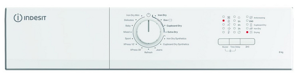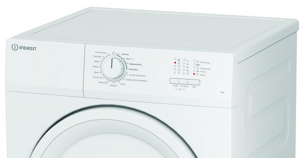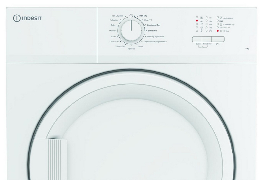Perfect for busy families, the Indesit CYDA81WWGLUK tumble dryer comes equipped with two Xpress Cycles for quick results: 10-minute and 30-minute settings ideal for last-minute needs. The CreaseCare anti-crease option rotates the drum for up to 10 hours after a cycle ends, helping to minimise wrinkles. Dedicated cycles for Baby, Delicates, Sport and Mix items ensure all garments receive the right care.