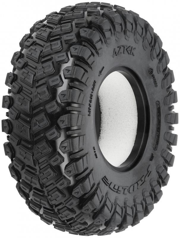 This is a pair of Aztek LP 2.2" Rock Crawling Tires. Pro-Line proudly announces the release of the Aztek, a revolutionary RC rock-crawling tire designed to redefine off-road performance standards. The Aztek boasts a chevron-shaped, stepped lug tread design, fortified by heavy-duty sidewall lugs with siping for enhanced side-hilling capabilities. This tire is meticulously crafted to conquer any terrain, offering exceptional forward bite in wet or dry, abrasive or slick conditions. The lower profile is ideal for Class 3 competition crawling, where you need the greater ground clearance of a 2.2" tire, but still maintain great sidewall stability.