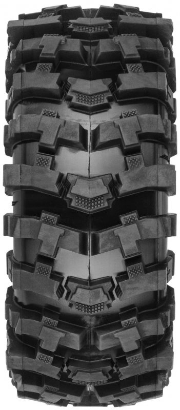 Coming in at 3.85" tall x 1.6" wide, this is just the right size for Class 0 builds! All the details of this gnarly tire is captured in perfect 1/10 scale detail: from the Tread Biter™ cleats for added traction to the Mud Scoops for added cleaning power, to the Massive Sidebiters® and angled shoulder scallops for ultimate side grip. The symmetric directional tread pattern provides excellent traction and cleaning power.
