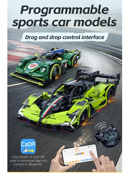 The CaDA C51308W 388-piece programmable sports car kit is designed to foster problem-solving, spatial reasoning, and creativity. Assembling the car introduces users to mechanical principles and structural design, while the app-based programming mode encourages logical thinking and experimentation. Users can pre-edit movement sequences, automate directional changes, and explore cause-and-effect through interactive control. This makes the Emerald Deity a valuable tool for STEAM education, blending engineering fundamentals with digital interactivity.