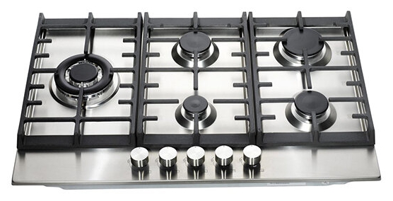 - Burners: 5 — spacious 5 burner stainless steel gas hob layout