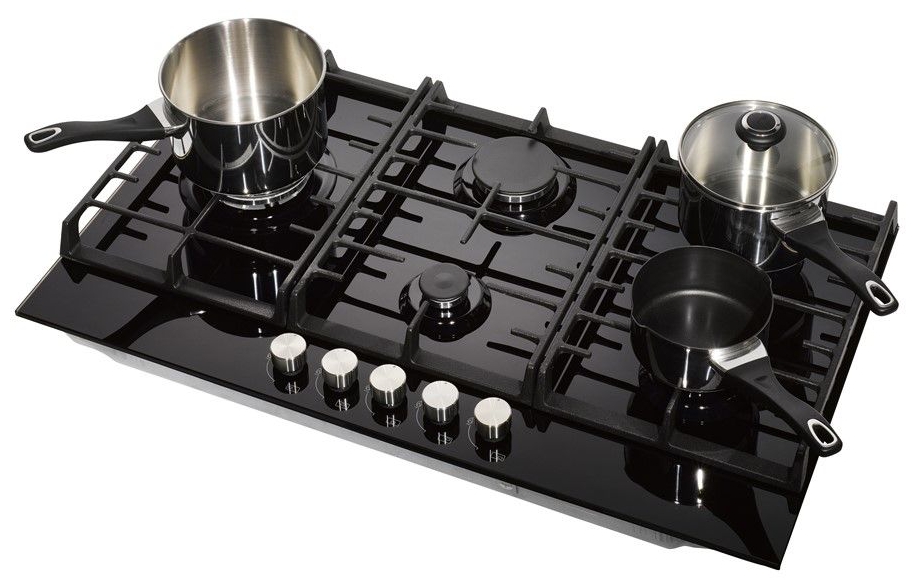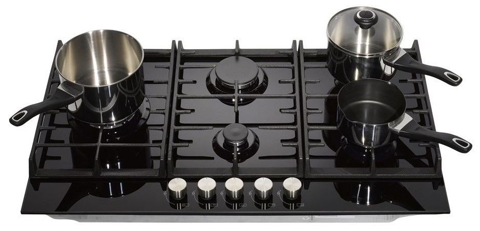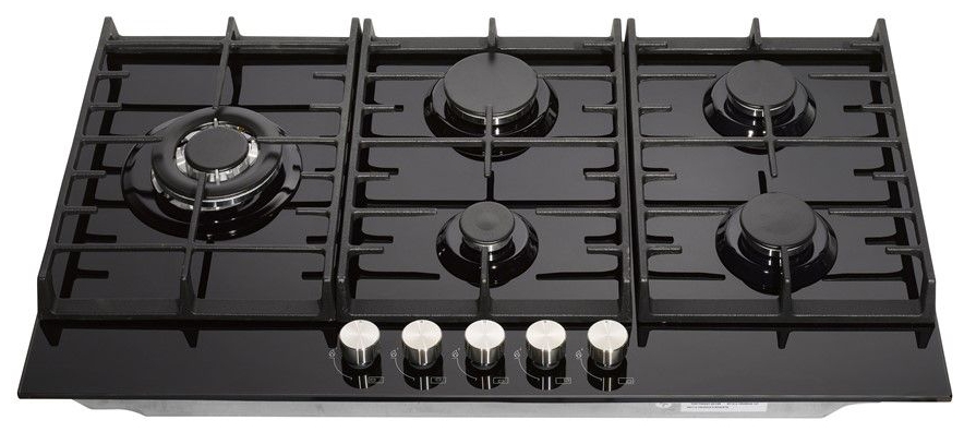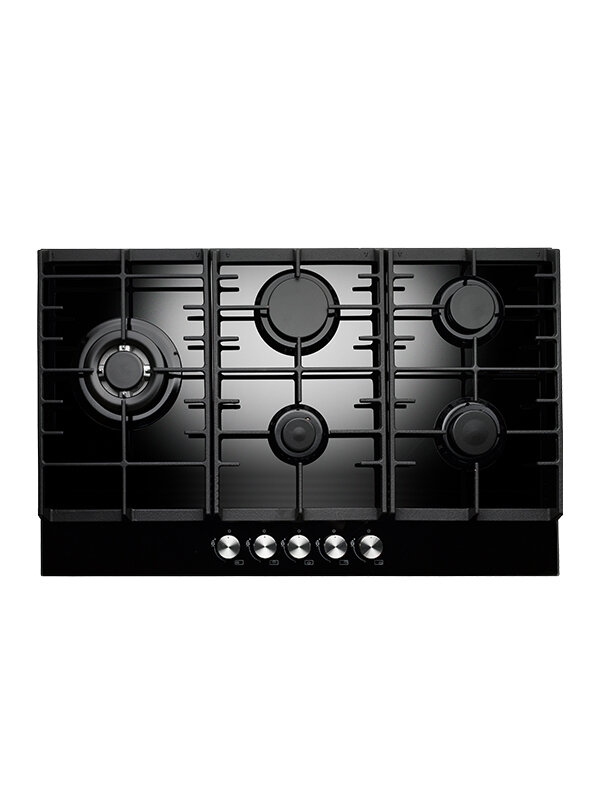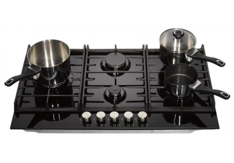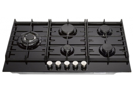 - Hob Type: 5 burner gas hob black glass with wok burner.
