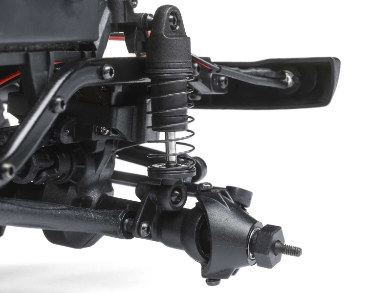 The front and rear axles consist of a two piece, moulded composite solid axle design. For optimal handling, the SCX24 suspension features a three-link front and four-link rear setup.