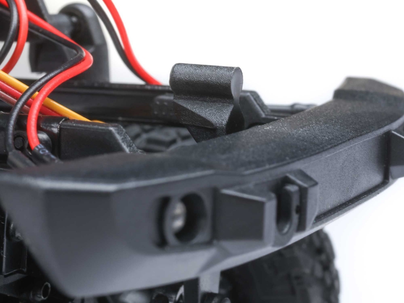 At the heart of the Axial SCX24 green Bronco with 030 brushed motor and working front lights is a Dynamite 88-turn brushed motor, engineered for torque and low-speed control. This motor configuration is ideal for technical crawling, allowing the vehicle to navigate steep inclines and tight spaces with precision. Mounted securely to a steel motor plate, the motor remains protected from flex and vibration, ensuring consistent performance. Combined with worm gear differentials, the motor delivers the power needed to conquer demanding terrain without sacrificing scale accuracy.