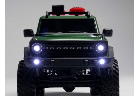For maximum realism, working lights are included on the front corners of the scale Ford Bronco body and in the front bumper. All four corners of the body feature moulded lenses.