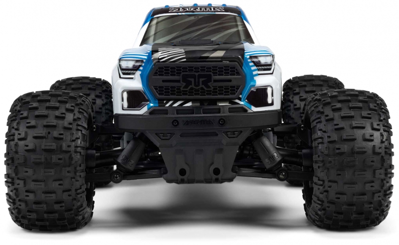 The ARRMA monster truck with composite chassis and throttle limiting transmitter is built to take hits and keep going. The ventilated composite chassis resists dirt intrusion and helps cool internal components. Extended side guards and a driveshaft stone guard protect critical systems during aggressive driving. The SLT3 transmitter’s throttle limiting feature allows you to control top speed until you're ready to unleash full power, making it ideal for beginners and experienced drivers alike. These features combine to deliver a monster truck that’s not only tough but also refined in its handling and responsiveness.