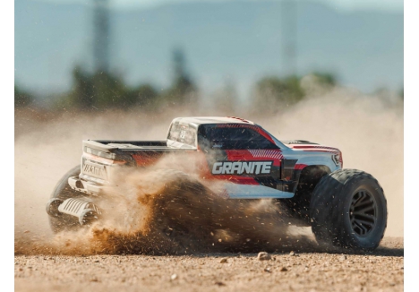 The ARRMA C-ARA4302V4T2 GRANITE 223S BLX 4X4 RTR with 3100Kv brushless motor and 80A ESC is a red 1/10 scale monster truck engineered for backyard bashing, off-road control, and upgrade-ready performance. Designed to deliver 50+ mph potential with 3S LiPo power, this aggressively styled truck combines rugged construction, intelligent electronics, and beginner-friendly features in one ready-to-run package. Whether you're launching off ramps or tearing through gravel, the ARRMA C-ARA4302V4T2 offers a balanced mix of speed, stability, and durability. With waterproof electronics, Dynamic Stability Control, and a clipless body retention system, this truck is built to grow with your skills and thrive in all conditions.