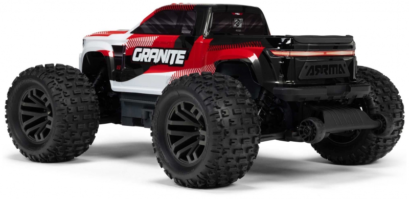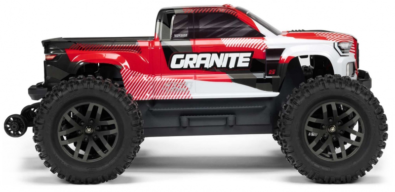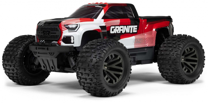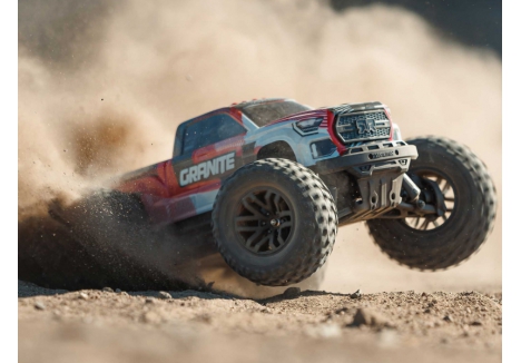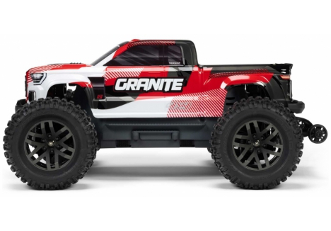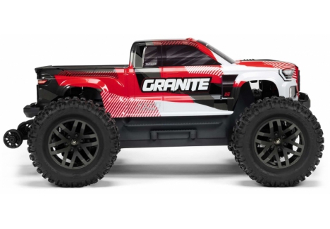 The ARRMA C-ARA4302V4T2 GRANITE 223S BLX 4X4 RTR with 3100Kv brushless motor and 80A ESC is a red 1/10 scale monster truck engineered for backyard bashing, off-road control, and upgrade-ready performance. Designed to deliver 50+ mph potential with 3S LiPo power, this aggressively styled truck combines rugged construction, intelligent electronics, and beginner-friendly features in one ready-to-run package. Whether you're launching off ramps or tearing through gravel, the ARRMA C-ARA4302V4T2 offers a balanced mix of speed, stability, and durability. With waterproof electronics, Dynamic Stability Control, and a clipless body retention system, this truck is built to grow with your skills and thrive in all conditions.