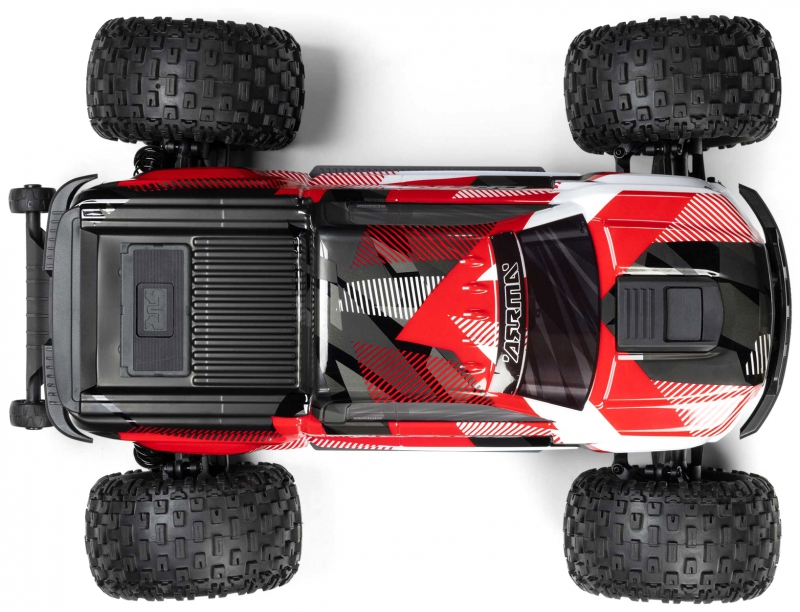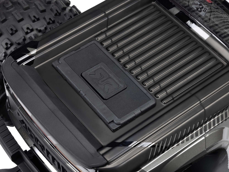 - Body Mount: Hidden clipless retention system – featured in the ARRMA C-ARA4302V4T2 monster truck with clipless body, SLT3 transmitter, and Dynamic Stability Control, secures body while allowing fast access