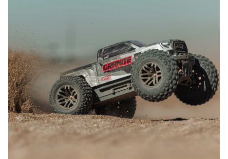 The ARRMA C-ARA4302V4T3 GRANITE 223S BLX 4X4 RTR with 3100Kv brushless motor and 80A ESC is a gunmetal 1/10 scale monster truck engineered for backyard bashing, terrain domination, and upgrade-ready performance. Built to deliver 50+ mph potential with 3S LiPo power, this aggressively styled truck combines rugged construction, intelligent electronics, and beginner-friendly features in one ready-to-run package. Whether you're launching off ramps or tearing through gravel, the ARRMA C-ARA4302V4T3 offers a balanced mix of speed, stability, and durability. With waterproof electronics, Dynamic Stability Control, and a clipless body retention system, this truck is designed to grow with your skills and thrive in all conditions.