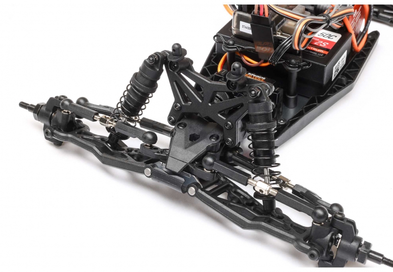 The oil-filled shocks on the LOSI C-LOS-1056T1 with 2S Smart LiPo battery and USB-C charger included are designed for racers who demand precise control over suspension dynamics. Each shock features a threaded collar for quick preload adjustments, allowing drivers to fine-tune ride height based on track conditions. The bottom-loading cartridge design includes dual O-rings to prevent oil leakage, ensuring consistent damping over time. These shocks are also compatible with different spring rates and TLR shock oils (sold separately), giving racers the flexibility to customize suspension response for specific surfaces and driving styles. Whether you're dialing in for grip or jump absorption, the shock system delivers reliable performance lap after lap.