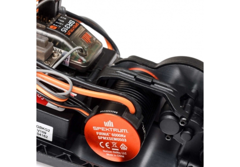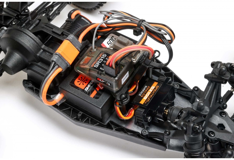 - Servo: Spektrum SX108 with servo saver – delivers 40+ oz-in torque and protects steering system during impacts