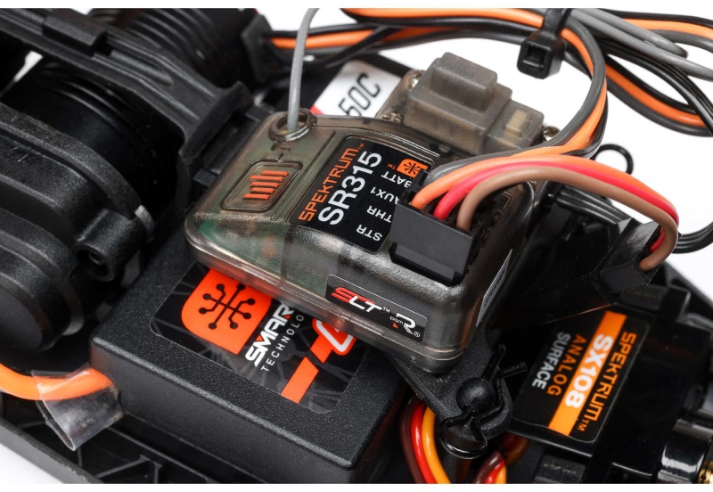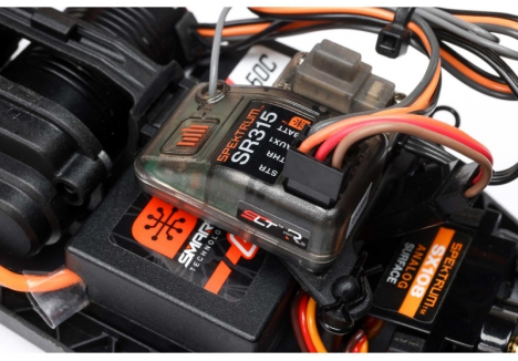 - Receiver: Spektrum SR315 – dual protocol with racing transponder port