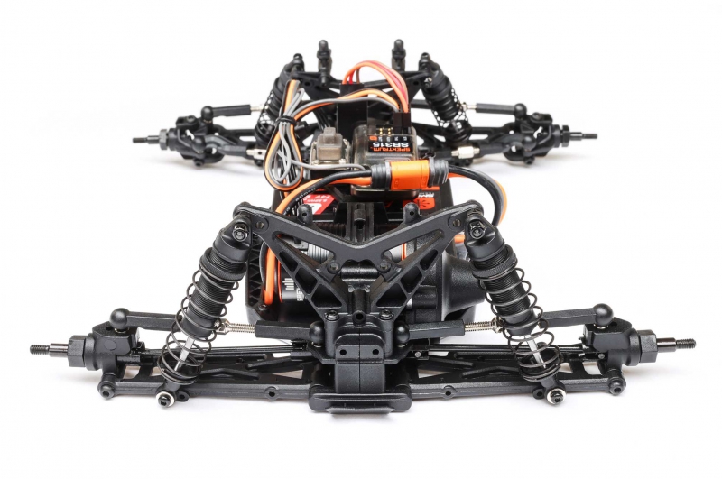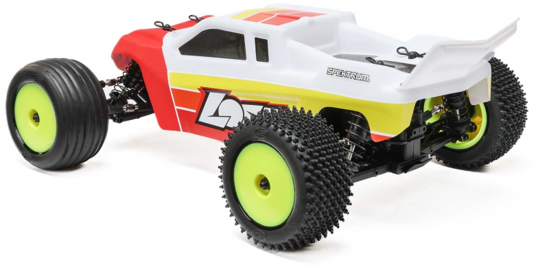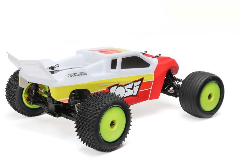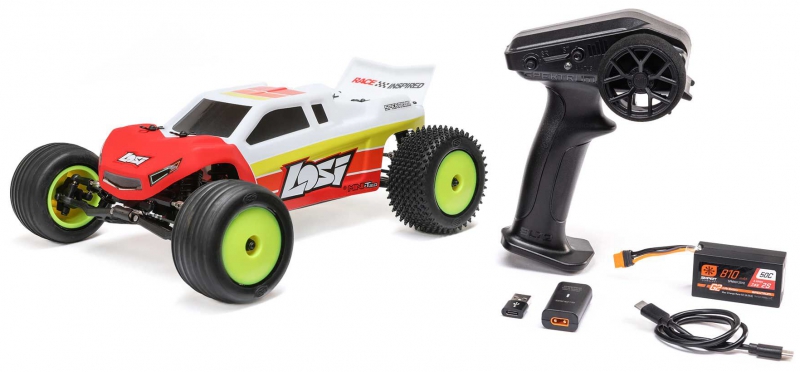 - Transmitter: Spektrum SLT2 2.4GHz – featured in the LOSI stadium truck with servo saver and full ball bearings, includes throttle limiting and steering trim