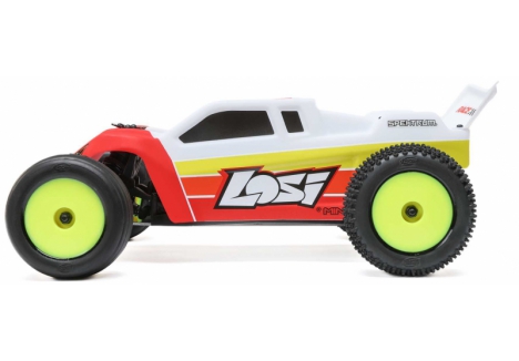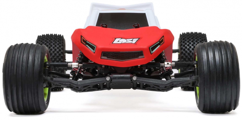 The LOSI C-LOS-1056T1 Mini-T 2.0 V2 RTR with 6000Kv brushless motor and Smart G2 LiPo system is a red 1/18 scale stadium truck designed to deliver race-inspired performance in a compact, ready-to-run format. Built for aspiring racers and seasoned enthusiasts alike, this stadium truck combines high-speed brushless power with a mid-motor layout and aluminum chassis for precision handling and durability. With a top speed exceeding 30 mph, the LOSI C-LOS-1056T1 Mini-T 2.0 V2 offers an ideal balance of agility, control, and tuning potential, making it a standout choice for mini-class competition and backyard racing alike.