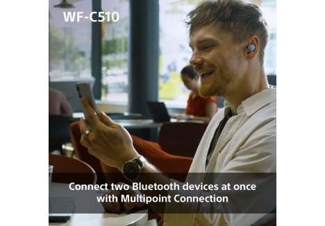 Yes, the Sony headphones with Multipoint Connection WFC510W.CE7 support simultaneous pairing with two Bluetooth® devices. This allows users to listen to music on one device while seamlessly switching to another for incoming calls. Once the call ends, music playback resumes automatically. This feature is particularly useful for professionals who juggle work and personal devices or for users who frequently switch between tablets, laptops, and smartphones.