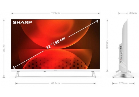 - Product Type: Sharp 1T-C32FH2KL2AW 32 inch HD Ready TV, Sharp 1T-C32FH2KL2AW Android smart TV white, Sharp 1T-C32FH2KL2AW frameless LED television, Sharp 1T-C32FH2KL2AW with Google Assistant and Chromecast, Sharp Android TV with Dolby Digital+ and Game Mode