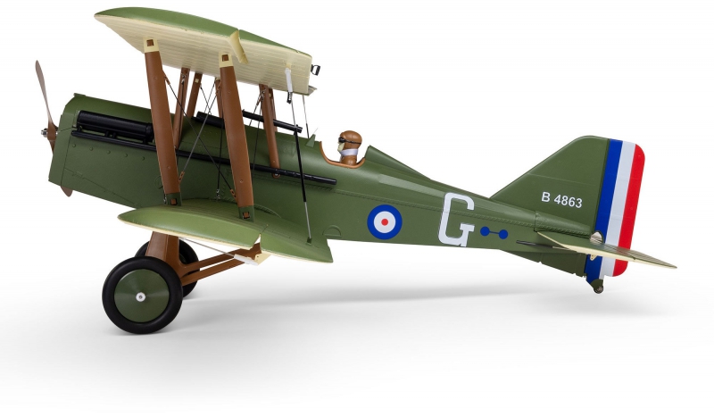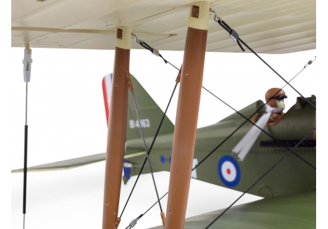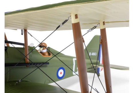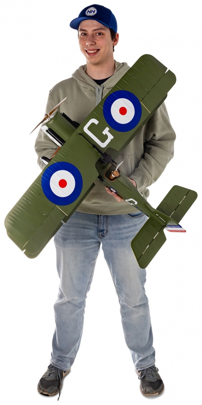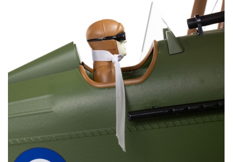 It features a variety of scale details, including moulded-in ribs, radiator and exhaust details, machine guns and pilot figure with a scarf, plus optional-use elastic flying wires. Functional features include large scale main wheels and a hidden steerable tailwheel, along with wings and struts that bolt and snap into place for easy assembly and disassembly. Yet it's sized to be easy to store and transport without disassembly and so it can be flown at large parks, sports fields, and RC flying fields. The factory-installed digital and metal-geared servos provide precise and reliable control at every speed. And the power system includes a Spektrum™ outrunner motor and an Avian 45-amp Smart Lite ESC compatible with popular 3S and 4S 2200-3200mAh batteries. The BNF Basic version is also equipped with a factory-installed Spektrum AR631+ receiver featuring exclusive and enhanced AS3X+® along with optional-use SAFE® Select technologies. Plus, both versions are factory-finished in the classic Royal Flying Corps two-tone with roundels trim scheme.