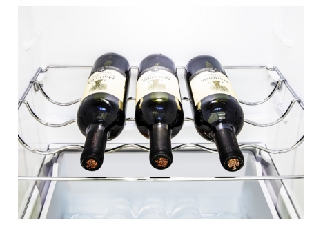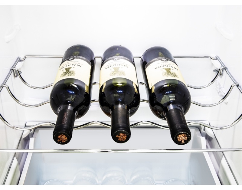 Entertain with ease using the Hisense fridge freezer with Super Cool and wine rack. A dedicated bottle rack secures wine and beverages, while the Super Cool feature chills drinks quickly to serving temperature. Adjustable shelving above accommodates tall bottles and party platters, transforming the chamber into a flexible entertaining hub.