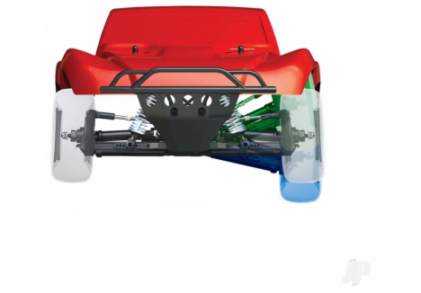 Slash 4X4’s tough clipless body holds firm no matter how rough the action gets. Heavy-duty latches grip the body tightly, but release in just seconds to access the chassis. Slash’s hidden latching system replaces time-consuming and inconvenient body clips with large, reinforced panels to resist pull-through damage.