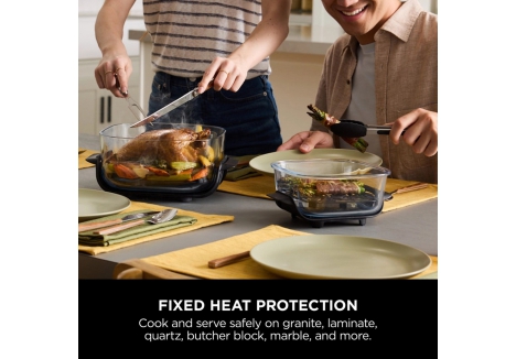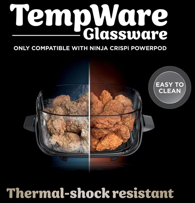 The Ninja Stone air fryer for non-toxic cooking and storage features CleanCrisp glassware that eliminates the need for chemical coatings or reactive materials. These containers are naturally non-stick, allowing users to cook and store food without worrying about toxins or residue. The glass vessels are also dishwasher-safe, making cleanup fast and hassle-free. This design supports health-conscious cooking while maintaining convenience and durability.