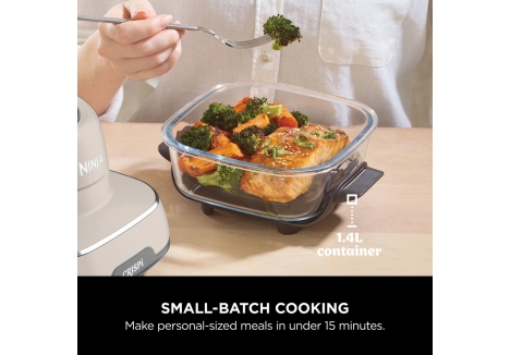 Yes. The dual-container system includes a 1.4L vessel for personal meals, snacks, or leftovers, and a 3.8L container for larger portions or family-style cooking. The PowerPod adaptor ensures a secure fit when using the larger container, making the Ninja CRISPi FN101UKST Glass Air Fryer versatile enough for solo use or entertaining. This flexibility allows users to prepare meals efficiently, regardless of portion size.