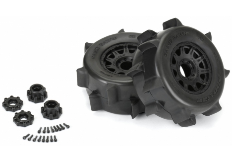 PRO1026810 | Sand Paw HP BELTED 3.8" Paddle Sand/Snow Tires Mounted on Raid Black 8x32 Removable Hex Wheels (2) for 17mm MT Front or Rear