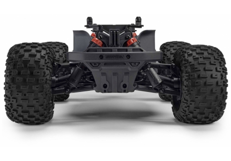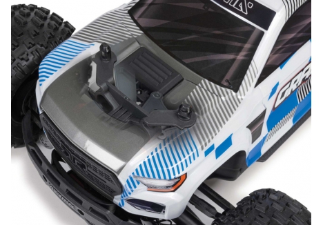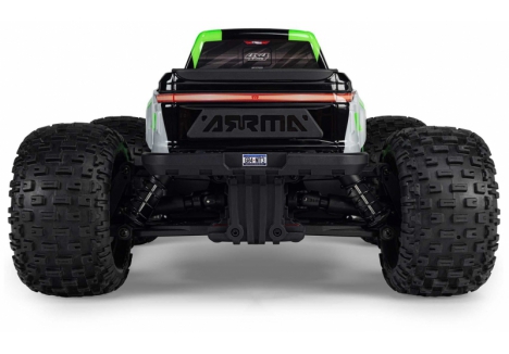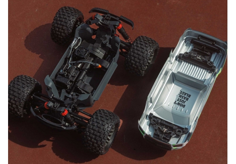 The hidden clipless body retention system on the ARRMA C-ARA4202V4T1 1/10 scale brushed 4WD truck with overload coupler and adjustable suspension is a standout feature for both aesthetics and practicality. Unlike traditional body clips that can be lost or damaged, this system uses concealed mounts to secure the body shell firmly in place. It preserves the aggressive monster truck styling while allowing quick access to internal components for battery swaps or maintenance. This design also reduces wear on the body shell and mounting points, extending the life of your truck’s exterior and improving your overall bashing experience.