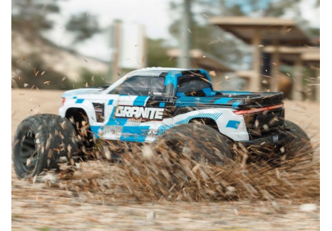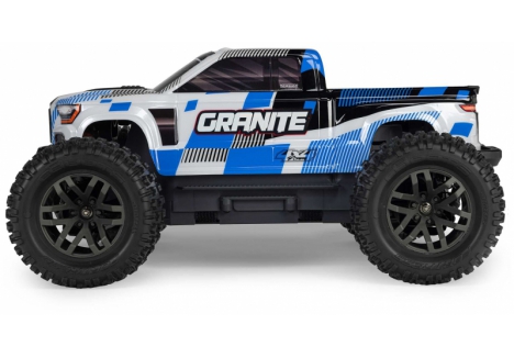 The ARRMA C-ARA4202V4T2 GRANITE MEGA 665 4X4 RTR with 14T brushed motor and 40A ESC is a blue monster truck engineered for drivers who want rugged performance, upgrade-ready design, and aggressive styling in one ready-to-run package. Built at 1/10 scale and equipped with a 4WD drivetrain, this brushed powerhouse delivers torque, traction, and terrain adaptability straight out of the box. Whether you're new to RC or looking for a durable platform to bash across dirt, gravel, or grass, the ARRMA C-ARA4202V4T2 offers a compelling mix of control, protection, and power. With waterproof electronics, a clipless body system, and a 3S brushless-ready transmission, this monster truck is built to grow with your skills and driving ambitions.