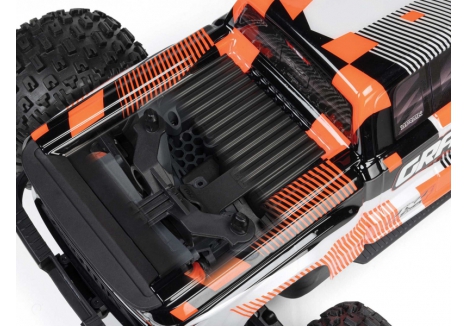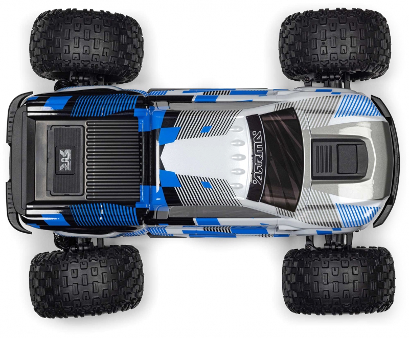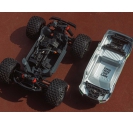 The ARRMA C-ARA4202V4T2 monster truck with clipless body, SLT2 transmitter, and IC3 connectors is designed to make entry into RC bashing simple and rewarding. The SLT2 transmitter includes throttle limiting options at 50% and 75%, allowing new drivers to build confidence before unleashing full speed. The clipless body retention system eliminates the hassle of body clips, offering fast access to internal components while maintaining a clean, aggressive look. IC3 connectors ensure secure and efficient power delivery from your 2S LiPo battery to the ESC. These features combine to create a user-friendly experience that doesn’t compromise on performance.