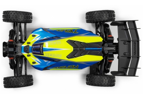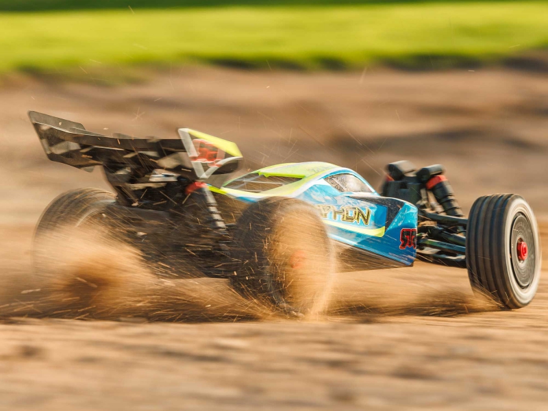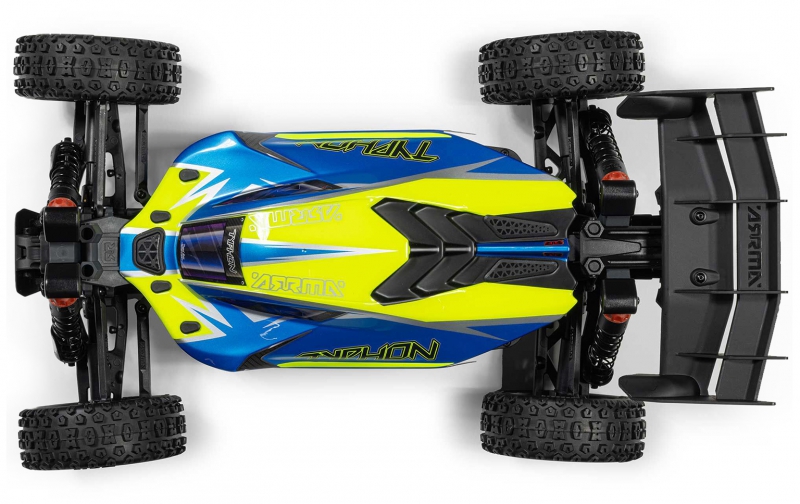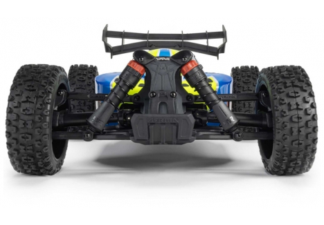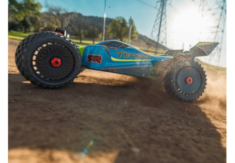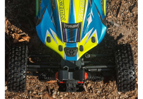 The ARRMA C-ARA4206V4T1 TYPHON MEGA 665 4X4 RTR with 14T brushed motor and 40A ESC is a blue 1/8 scale racing buggy engineered for drivers who want to push the boundaries of off-road control and speed. Designed for aggressive bashing and precision handling, this ready-to-run buggy combines a high-speed brushed motor, rugged 4WD drivetrain, and upgrade-ready transmission in a sleek, aerodynamic package. Whether you're launching off dirt ramps or carving through gravel tracks, the ARRMA C-ARA4206V4T1 delivers a balanced mix of power, durability, and responsiveness. With waterproof electronics, a ventilated chassis, and a clipless body retention system, this buggy is built to perform in all conditions and evolve with your driving skills.