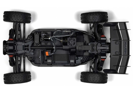 The ARRMA C-ARA4206V4T2 buggy with clipless body, SLT2 transmitter, and IC3 connectors is designed to give drivers intuitive control and fast access to internal components. The SLT2 transmitter includes throttle limiting options at 50% and 75%, allowing new drivers to ease into the buggy’s full speed potential. The clipless body retention system eliminates the need for body clips, preserving the buggy’s aerodynamic look while making battery swaps and maintenance quick and hassle-free. IC3 connectors ensure secure and efficient power delivery from your 2S LiPo battery to the ESC, supporting consistent performance across all terrain types.