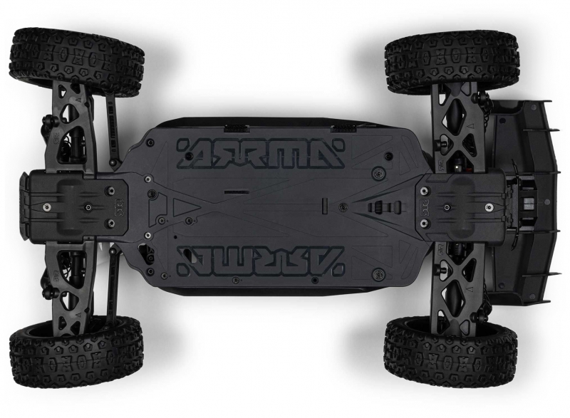 - Chassis Type: Composite – ventilated for cooling and designed to shed debris, as seen in the ARRMA C-ARA4206V4T2 with 3S brushless-ready transmission and ventilated chassis