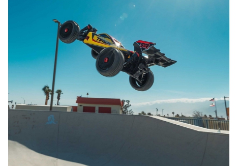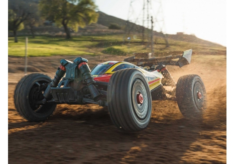 The ARRMA C-ARA4206V4T2 TYPHON MEGA 665 4X4 RTR with 14T brushed motor and 40A ESC is a yellow 1/8 scale racing buggy engineered for drivers who demand rugged performance, upgrade-ready design, and aggressive styling in one ready-to-run package. Built for off-road control and high-speed bashing, this buggy combines a powerful brushed motor, durable 4WD drivetrain, and aerodynamic body with a low center of gravity. Whether you're launching off dirt ramps or carving through gravel tracks, the ARRMA C-ARA4206V4T2 delivers a balanced mix of torque, traction, and terrain adaptability. With waterproof electronics, a ventilated chassis, and a clipless body retention system, this buggy is designed to evolve with your driving skills and deliver consistent performance in all conditions.