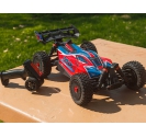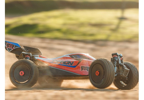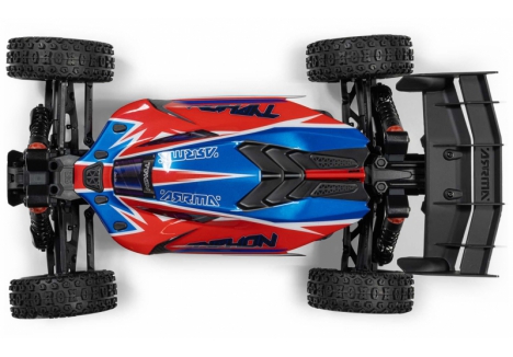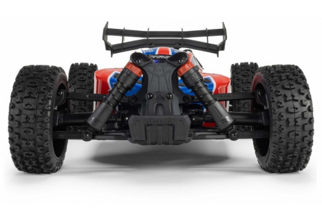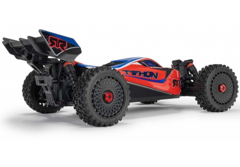 The ARRMA C-ARA4206V4T3 TYPHON MEGA 665 4X4 RTR with 14T brushed motor and 40A ESC is a red 1/8 scale racing buggy engineered for off-road enthusiasts who demand rugged performance, upgrade flexibility, and aggressive styling in one ready-to-run package. Designed to tackle dirt, gravel, and short grass with ease, this buggy combines a powerful brushed motor, durable 4WD drivetrain, and aerodynamic body with a low center of gravity. Whether you're launching off ramps or navigating uneven terrain, the ARRMA C-ARA4206V4T3 delivers a balanced mix of torque, traction, and terrain adaptability. With waterproof electronics, a ventilated chassis, and a clipless body retention system, this buggy is built to evolve with your driving skills and deliver consistent performance in all conditions.