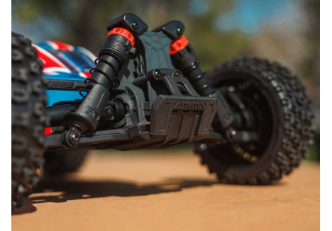 The ARRMA C-ARA4206V4T3 1/8 scale brushed 4WD buggy with overload coupler and adjustable suspension is built to dominate off-road environments. Its independent suspension system features oil-filled coilover shocks that absorb impacts and maintain stability across uneven surfaces. The adjustable ride height lets you fine-tune ground clearance for different bashing conditions. The overload coupler replaces the traditional slipper clutch, offering a maintenance-free solution that protects the transmission from excessive torque. These features ensure the ARRMA C-ARA4206V4T3 performs reliably across dirt tracks, gravel paths, and backyard ramps.