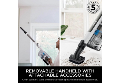 - Handheld conversion – Quickly transforms into a handheld vacuum to clean stairs, upholstery, cars, and ceilings.
