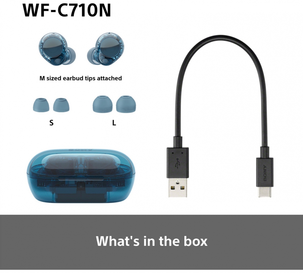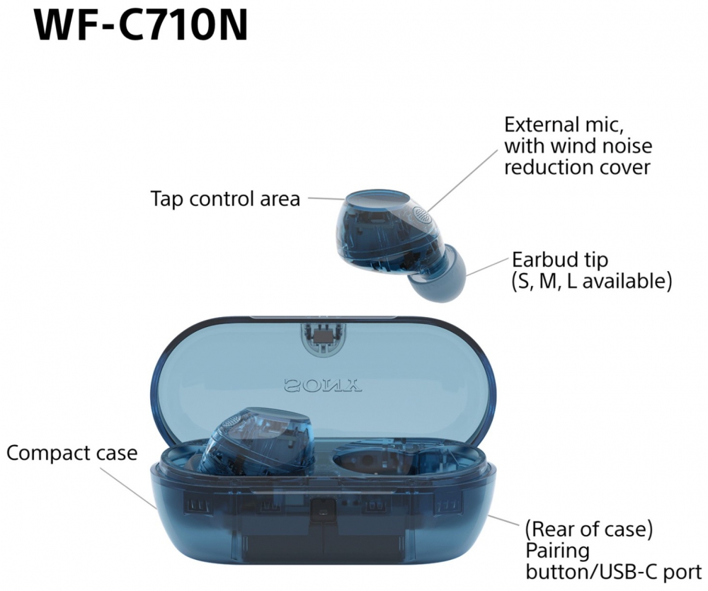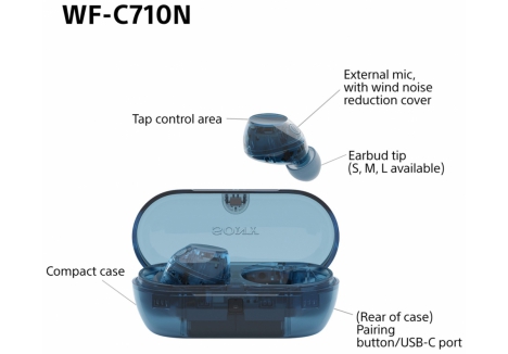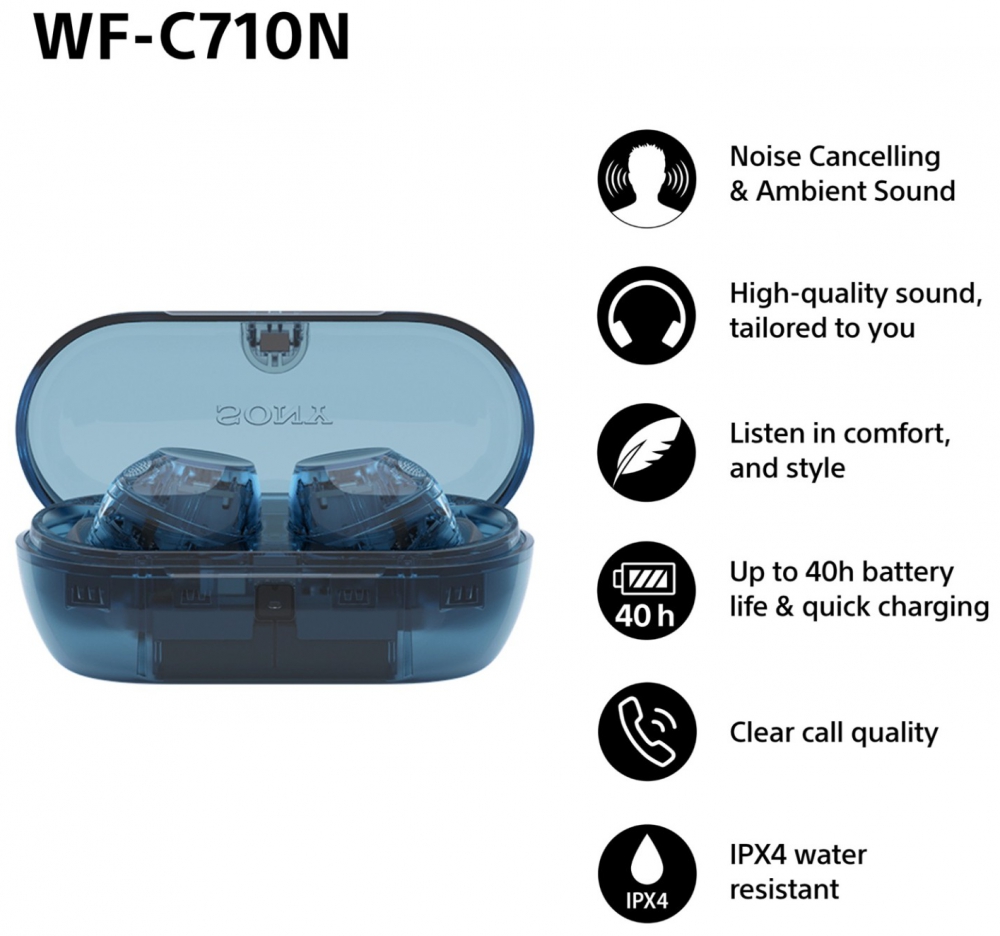 Key features of the Sony WFC710NL.CE7 wireless earbuds glass blue with noise cancelling