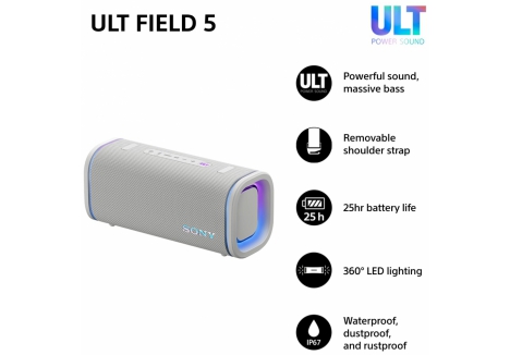 The Sony SRSULT50W.CE7 Bluetooth speaker off white is a high-performance portable audio solution designed for users who demand powerful sound, rugged durability, and immersive lighting in a compact form. As part of Sony’s ULT POWER SOUND series, this off-white speaker delivers a rich, bass-driven experience with selectable ULT1 and ULT2 modes, engineered to energize any environment. Whether you’re hosting a party, relaxing outdoors, or streaming music at home, the Sony SRSULT50W.CE7 portable speaker with ULT bass combines advanced acoustic technologies with user-friendly features to elevate your listening experience across all settings.