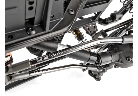 We’ve updated the Builder’s Kit yet again by including our GKS™ shock towers in front and rear. Our shock mount inserts provide the ability to adjust shock angle, droop, and vehicle ride height without affecting spring preload. Matched up with the shock mount inserts are our race-proven ultra-smooth Factory Team bronze shocks with black plastic bleeder caps and collars–perfect for traversing rough terrain. Along with the updated shock towers, we’ve included the GKS aluminum track bar mount that is bolted directly to the frame rails. This makes the front suspension more rigid and flex-free with a more precise steering feel. Also included are updated Factory Team 12.3 and 12.8-inch wheelbase high-clearance links with black nitrate finish and durable Factory Team steel pivot balls for smooth articulation.