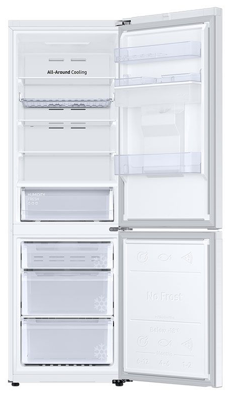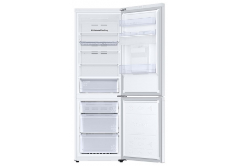 The Samsung RB34C632EWW balances performance with energy efficiency. With an annual energy consumption of 254 kWh and a noise level of just 35 dBA, this appliance operates quietly and economically. The All-Around Cooling system ensures that every corner of the fridge maintains a consistent temperature, reducing food waste and preserving freshness. The use of R600a refrigerant supports environmentally friendly cooling, while the climate class rating (SN, N, ST, T) ensures reliable operation across a range of ambient conditions. These attributes make the Samsung RB34C632EWW one of the best choices for households seeking sustainable and efficient refrigeration.