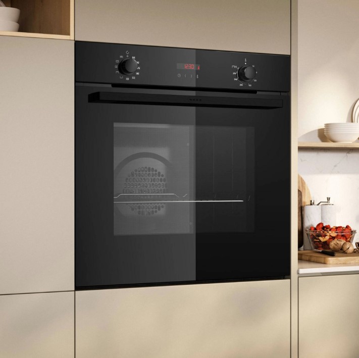The LED display knob offers simple, straightforward operation, keeping cooking controls clear and easy to manage. This built in oven fits perfectly into 60 cm cabinetry and features a contemporary black finish that complements any kitchen. Whether you’re upgrading or building a new kitchen, this built in pyrolytic electric oven black makes a stylish and practical choice.