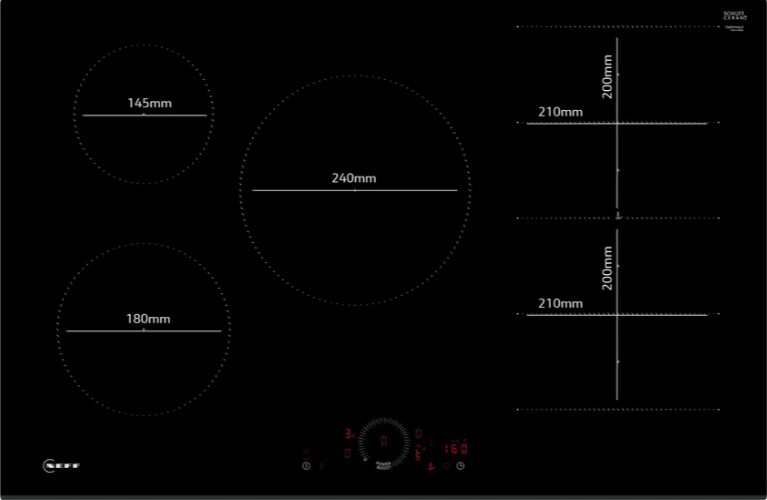 The Neff T68FHV4L0 black induction hob gives you total freedom in the kitchen with Flex Induction zones. You can combine multiple smaller zones into one large surface, ideal for oversized cookware or multiple smaller pans. Whether you’re preparing family favourites, experimenting with new recipes, or cooking for a dinner party, this induction hob with flexible cooking zones lets you adapt the cooking area to suit every dish with ease and flexibility.