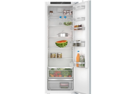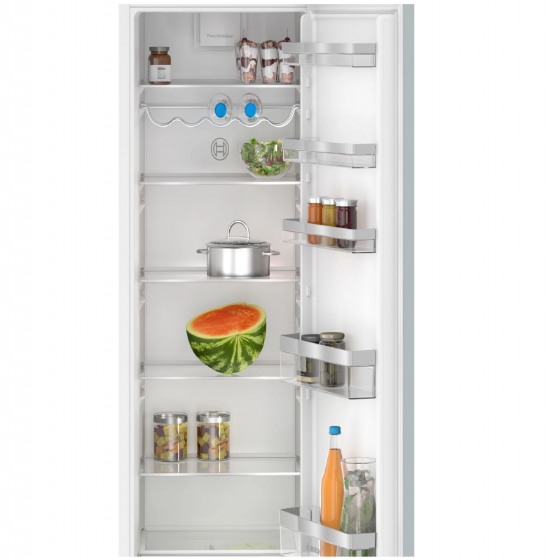 The Bosch KIR81VFE0G larder fridge is a premium built-in solution for modern kitchens, offering spacious storage, advanced cooling, and ultra-quiet operation. With a height of 177.2 cm and a width of 54.1 cm, this Bosch integrated tall larder fridge fits seamlessly into tall cabinetry, making it ideal for streamlined kitchen designs.