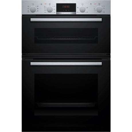 The Bosch MBA533BS3B double oven brings dependable performance and modern convenience to your kitchen. With its sleek stainless steel finish and energy?efficient electric double oven design, this built-in model is ideal for busy households that love to cook. Featuring Bosch’s clever 3D Hotair technology, it delivers perfectly even heat on up to three levels, making meal prep faster and more reliable whether you're baking or roasting.