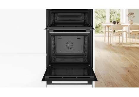 Keeping your oven sparkling is easier than ever with Bosch’s EcoClean Direct system. A special coating on the back wall of the main oven absorbs grease and reduces build-up during use, significantly cutting down on manual cleaning. With no need for pyrolytic cycles or harsh chemicals, the pyrolytic self?cleaning double oven Bosch alternative helps you maintain a hygienic cooking space effortlessly.