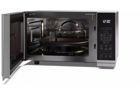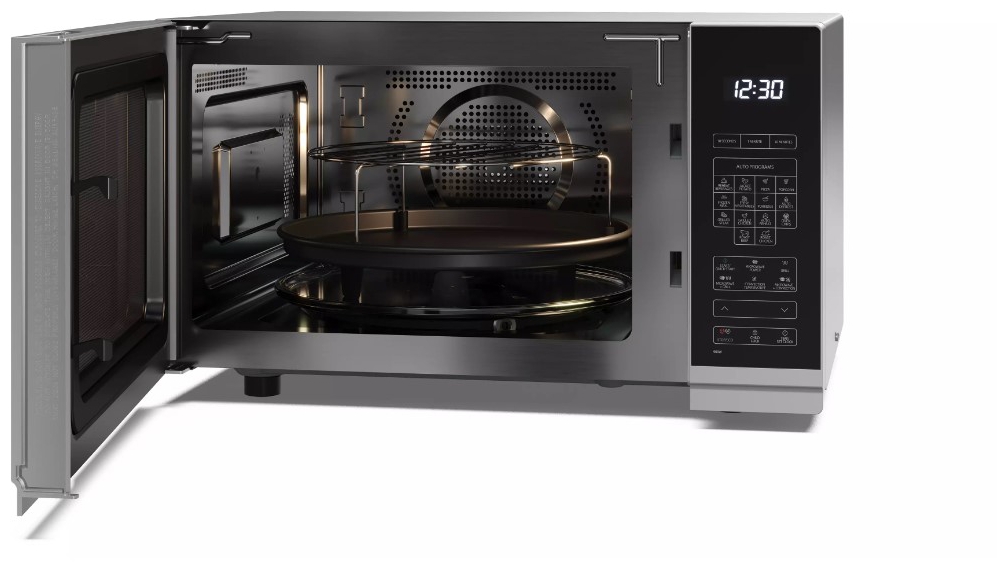 The 315mm turntable provides generous space for large plates and serving dishes, allowing for even cooking and reheating. The durable stainless steel interior of this freestanding silver combination microwave oven not only enhances heat reflection but also makes cleaning effortless. The smooth, easy-wipe surfaces reduce maintenance, so you can spend more time enjoying your meals and less time cleaning up.
