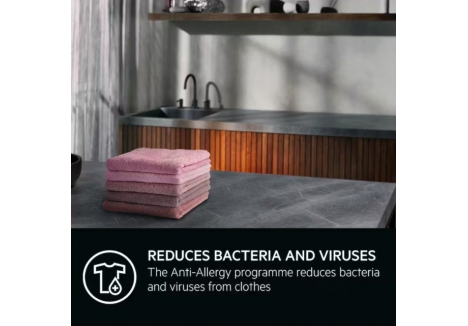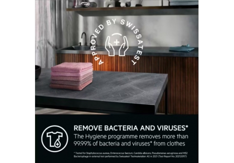 One of the most important features for families and individuals with allergies or sensitive skin is the Hygiene programme. This cycle is designed to eliminate bacteria and allergens effectively, offering a deep clean that prioritises health and well-being. Whether you’re washing baby clothes, sports gear, or bedding, this function provides peace of mind with every cycle. The integrated steam function also helps reduce bacteria while minimising creases for easier ironing.